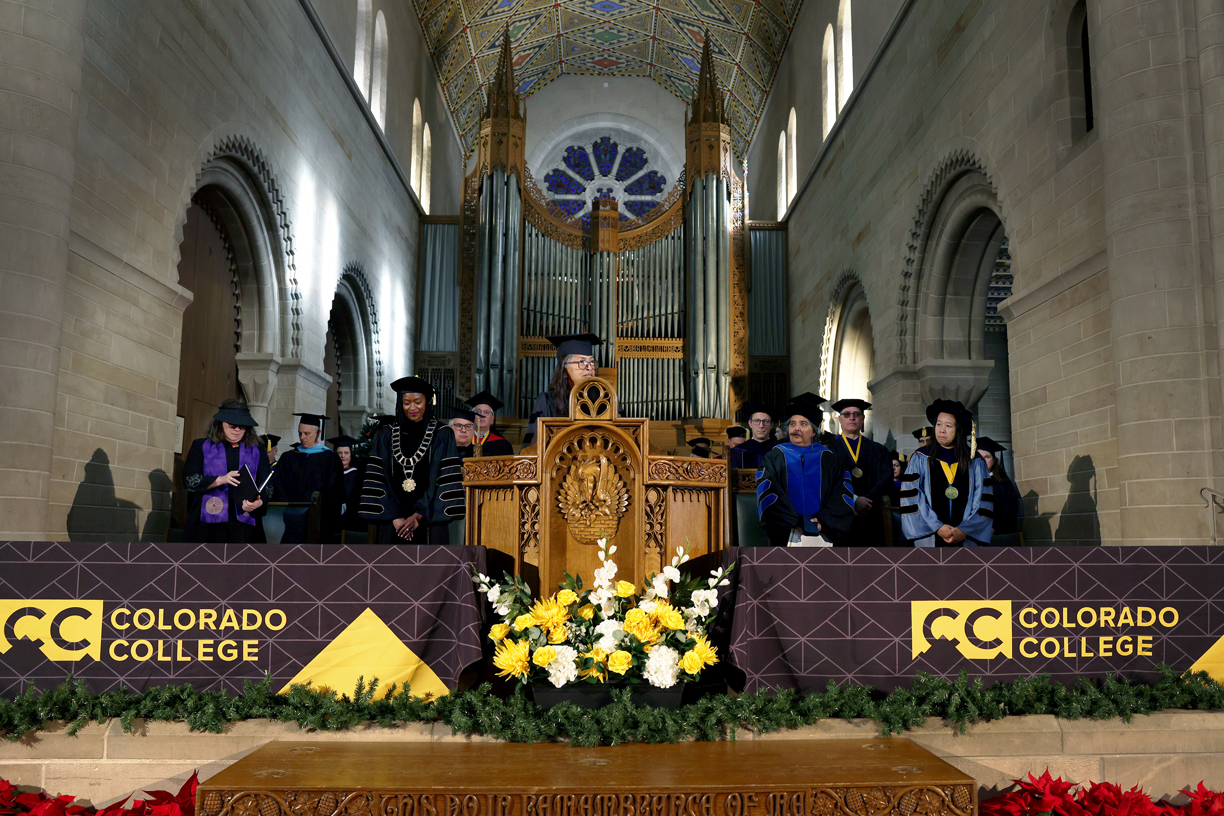 Twenty-seven students walked into Shove Memorial Chapel on Sunday, December 14, 2025, a group small in number but large in presence, to celebrate the end of their college chapter and the beginning of life outside these walls. Though the setting was more intimate than the larger ceremony in May, they received the accolades and recognition they deserved, with friends and family cheering them on.